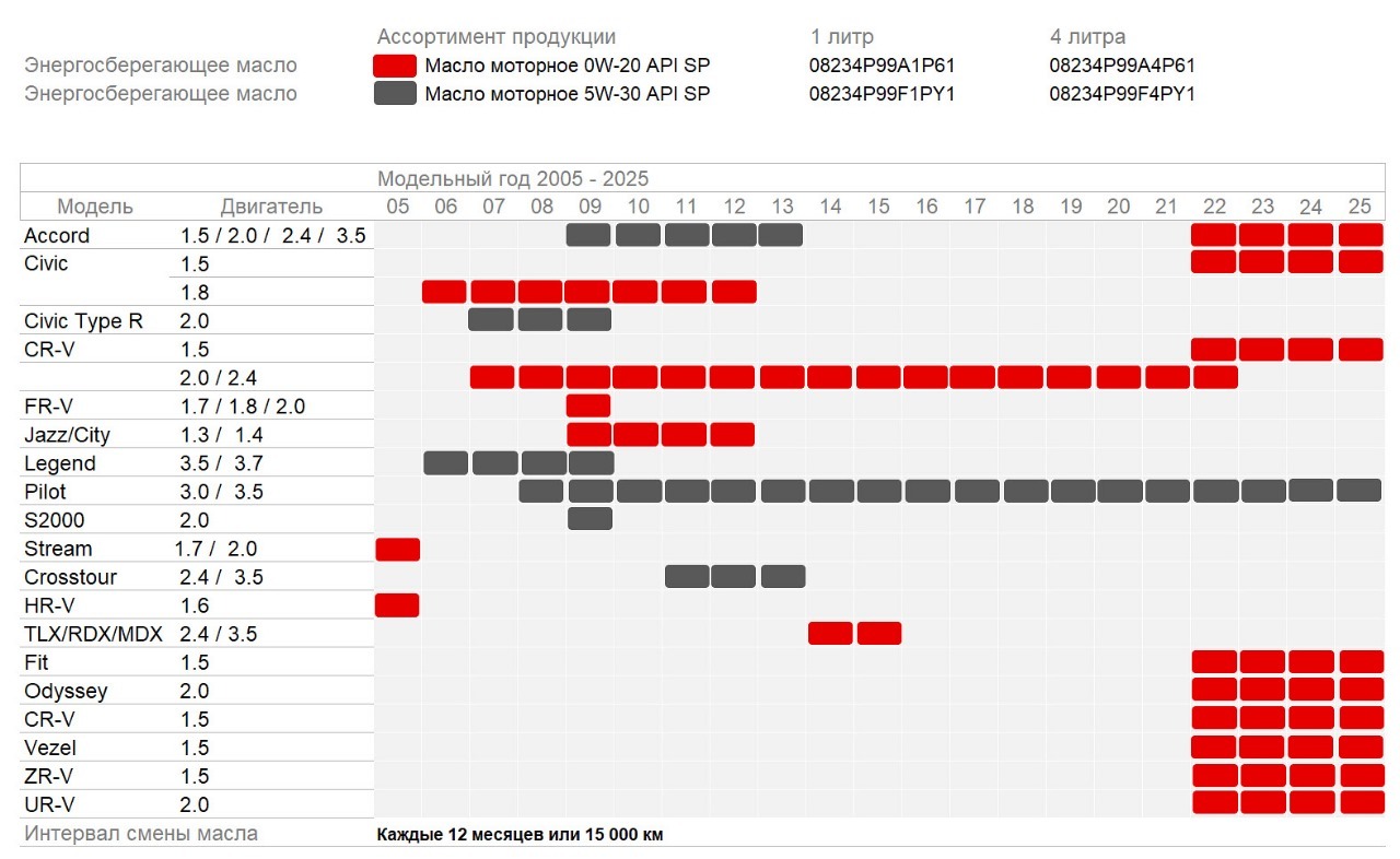 Таблица применяемости моторного масла
