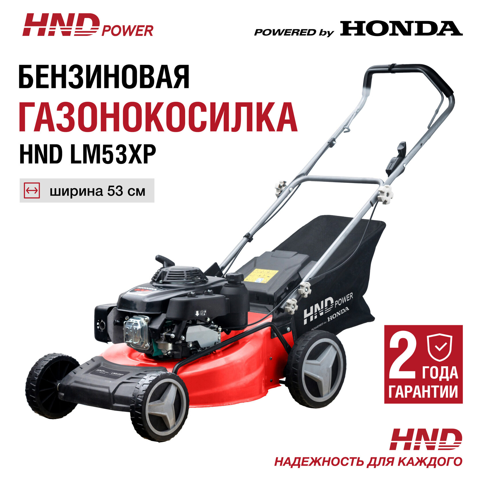 Распродажа несамоходных бензиновых газонокосилок HND с легендарным по надежности двигателем Honda GXV160 (профессиональная серия).